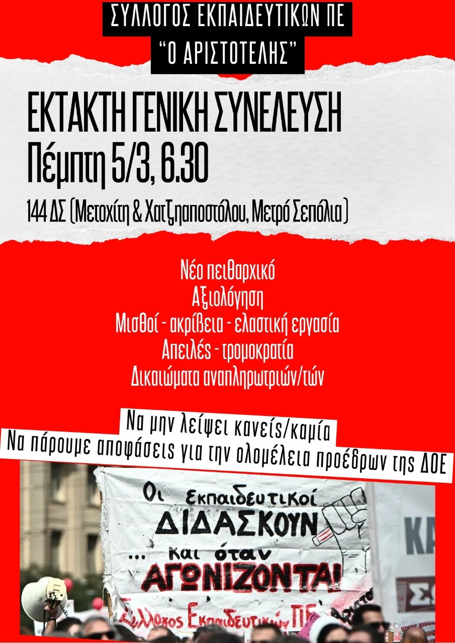 Αριστοτέλης: Αξιολόγηση: Νέα βήματα και κάλεσμα προς τις/ τους διευθυντ(ρι)ες/προϊσταμένες να ακολουθήσουν και να σεβαστούν τις αποφάσεις των συλλόγων διδασκόντων! Ο αγώνας ενάντια στην αξιολόγηση συνεχίζεται! εδώ