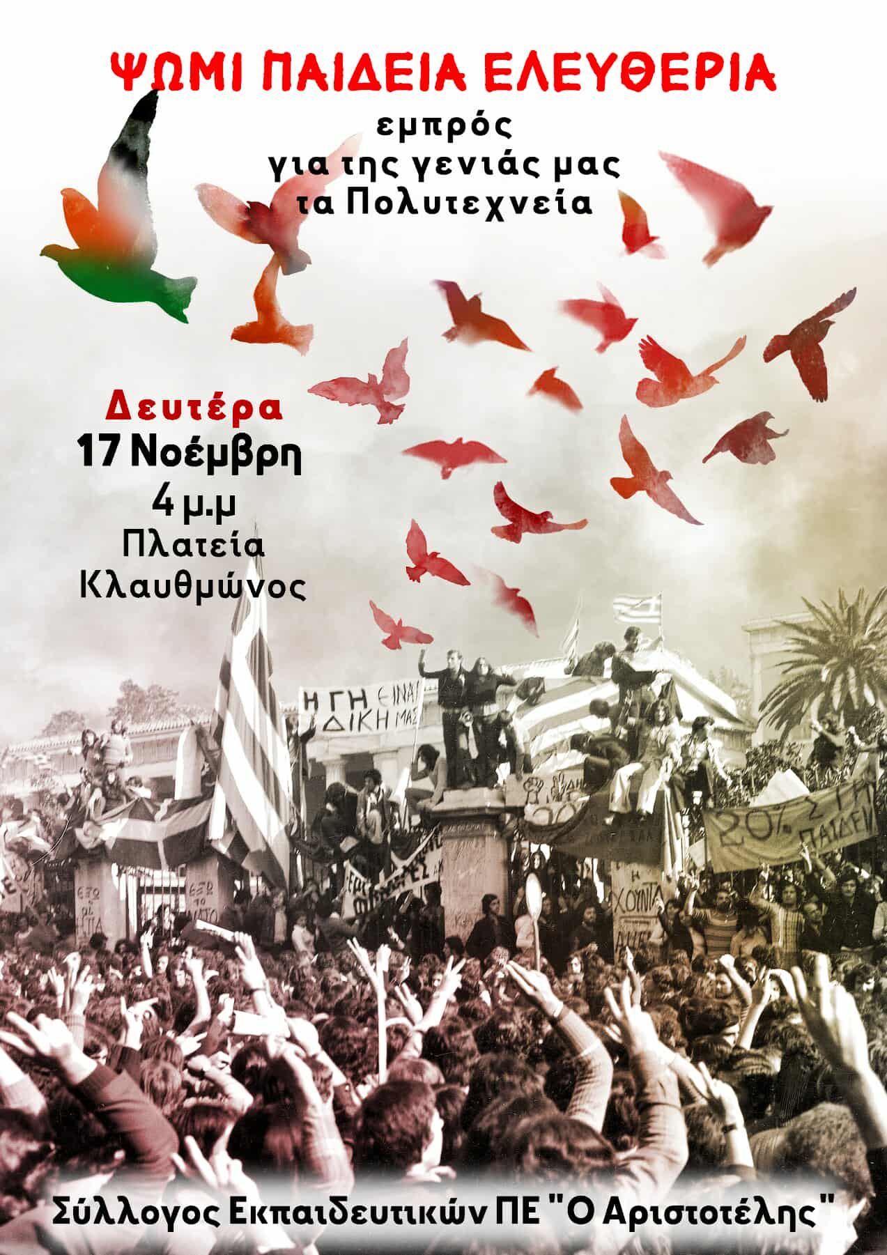 Συγκέντρωση Δευτέρα 17 Νοέμβρη, 4.00μμ πλατεία Κλαυθμώνος εδώ