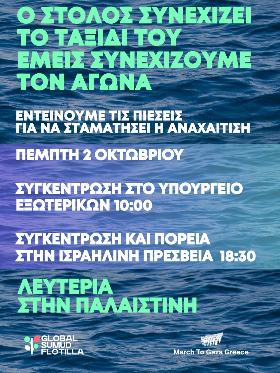 Νέα κινητοποίηση σήμερα Πέμπτη 18:30 στο πάρκο Ελευθερίας (μετρό Μέγαρο Μουσικής) και πορεία στην ισραηλινή πρεσβεία