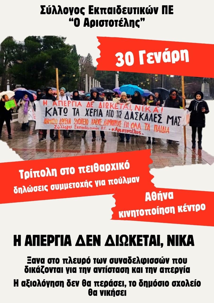 Αριστοτέλης: Τετάρτη 21.01 στην Τρίπολη με πούλμαν (αναλυτική ενημέρωση) και συγκέντρωση πλ. Κλαυθμώνος 13:00 Για τη δικαίωση των συναδελφισσών μας και του απεργιακού δικαιώματος!