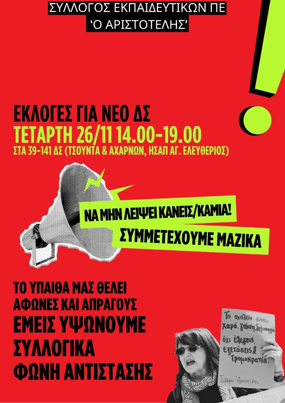Απόφαση ΓΣ Αριστοτέλη 24.11.2025: Για τους εκπαιδευτικούς όλων των ειδικοτήτων στην Πρωτοβάθμια Εκπαίδευση