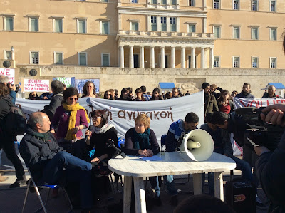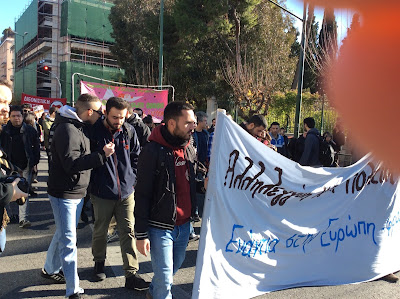 Δυναμική η συγκέντρωση στα γραφεία της ΕΕ, η πορεία στη βουλή και η συνέντευξη τύπου που οργάνωσαν αντιρατσιστικές οργανώσεις, κινήματα αλληλεγγύης, κοινωνικές και πολιτικές συλλογικότητες μαζί με τους Βάσκους αγωνιστές που είχαν συλληφθεί στην Ηγουμενίτσα και αντιμετωπίζουν βαριές κατηγορίες για την επιχείρηση μεταφοράς 8 προσφύγων από την Ελλάδα στη χώρα των Βάσκων. Με μαζική παρουσία αγωνιστών από τις συλλογικότητες που οργάνωναν την κινητοποίηση, με συνθήματα ενάντια στην ποινικοποίηση της αλληλεγγύης, ενάντια στην επαίσχυντη συμφωνία ΕΕ- Τουρκίας και στην πολιτική των κλειστών συνόρων και των στρατοπέδων συγκέντρωσης, ενάντια στον πόλεμο και το ρατσισμό, τη φτώχεια και το φασισμό, η πορεία κατέληξε στο Σύνταγμα όπου δόθηκε συνέντευξη τύπου έξω από τη βουλή, μπροστά από τον άγνωστο στρατιώτη.