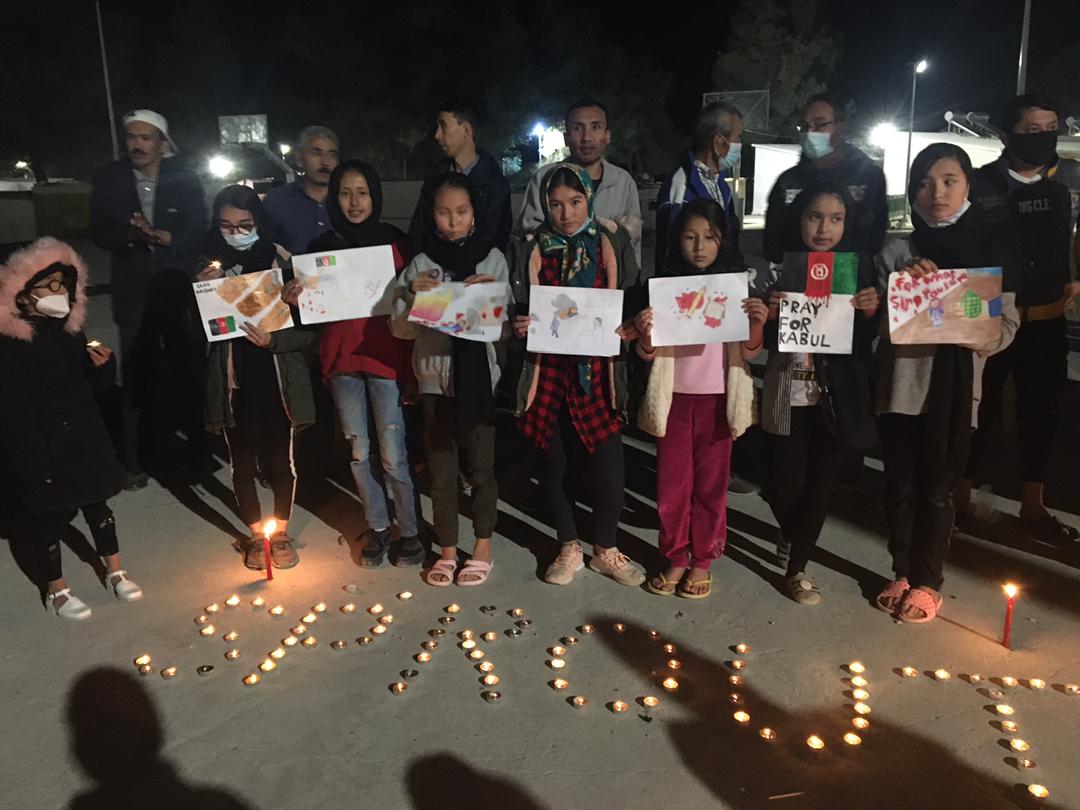 Οι πρόσφυγες της Ριτσώνας συγκεντρώθηκαν στην πύλη του Κέντρου Υποδοχής και τίμησαν τη μνήμη των θυμάτων, ζητώντας να σταματήσει η αιματοχυσία στη χώρα τους και να έρθει ειρήνη.