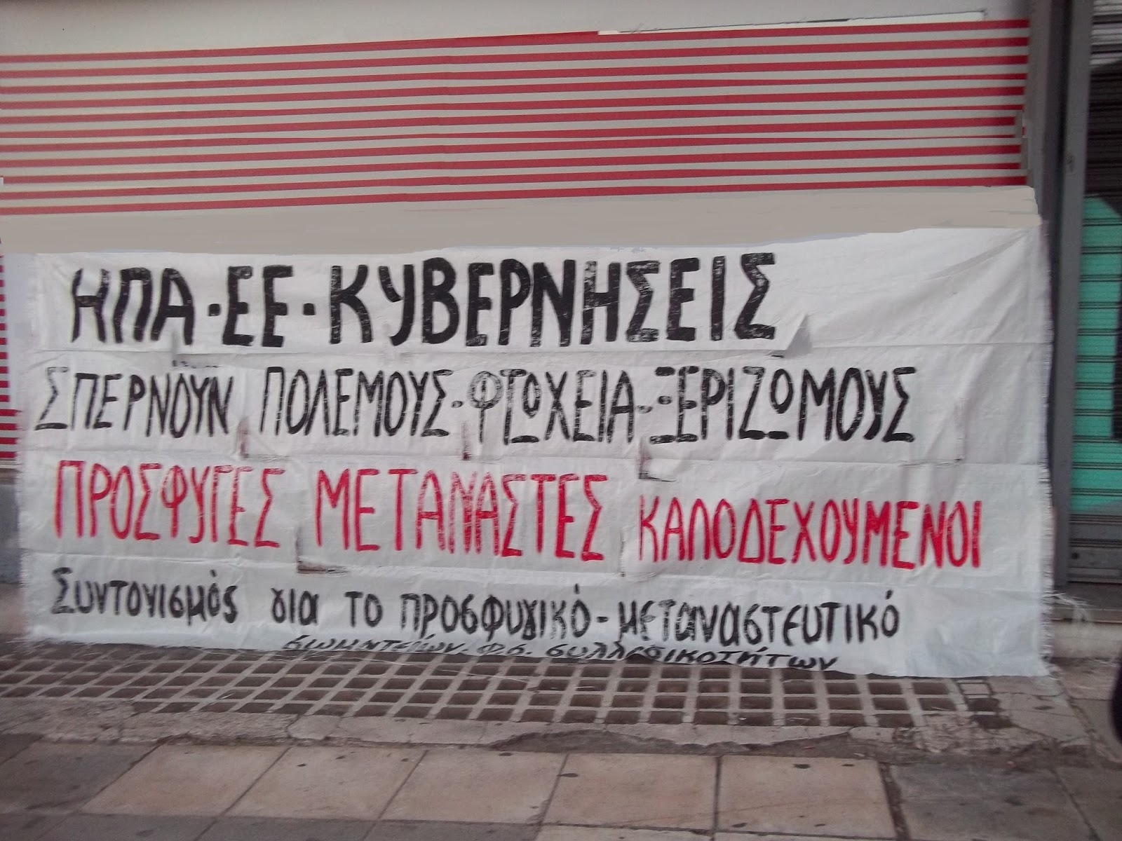 Από την πλευρά του Συντονισμού δηλώσαμε ότι για μας Πρόσφυγες - μετανάστες είναι καλοδεχούμενοι. Απαιτήσαμε η κυβέρνηση τώρα να ανοίξει σε όλες τις περιοχές θερμαινόμενους χώρους για να φιλοξενηθούν οι πρόσφυγες και οι μετανάστες. Να κάνει επίταξη ξενοδοχείων για να στεγαστούν οι πρόσφυγες όσο θα διαρκέσει η κακοκαιρία.