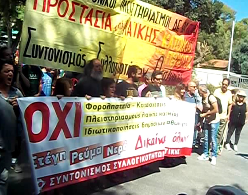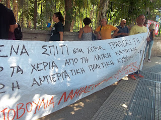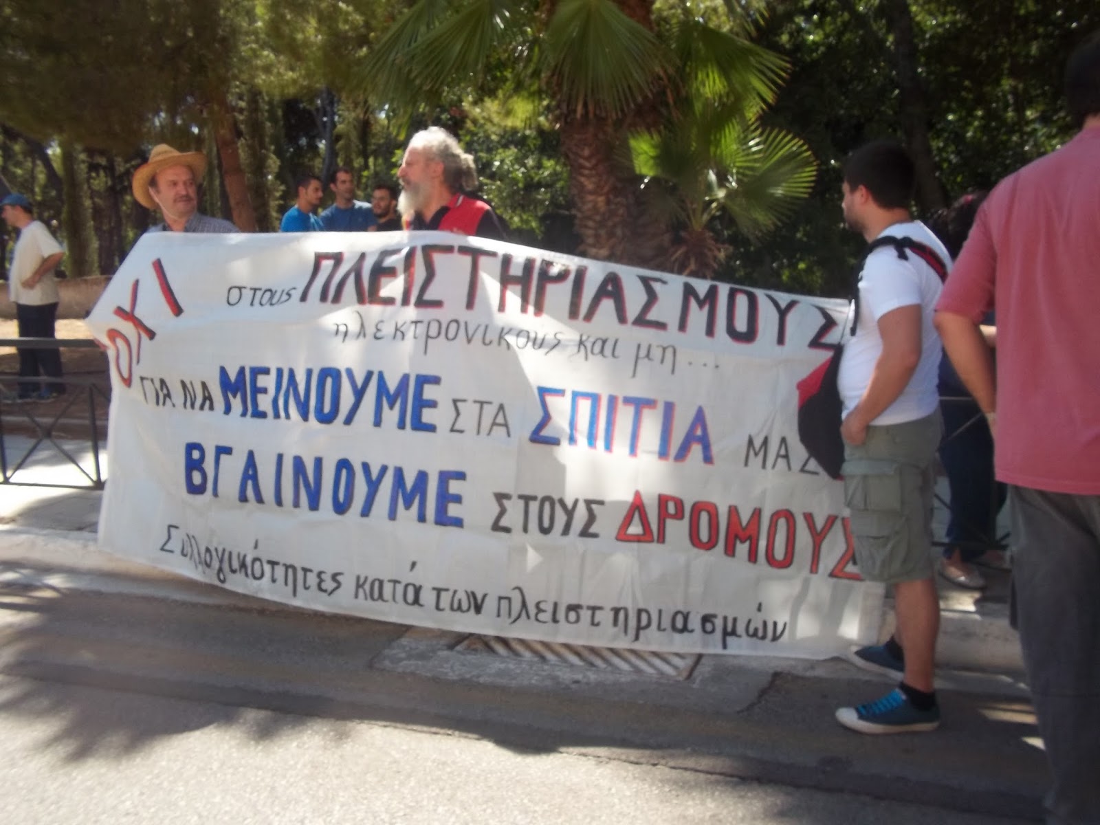 -απαιτήσαμε την παύση κάθε δίωξης και την πλήρη απαλλαγή των μελών του κινήματος ενάντια στους πλειστηριασμούς για τη δράση τους