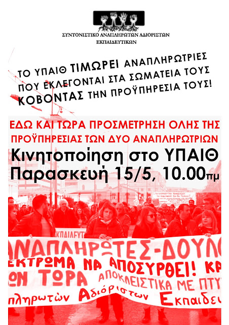 Συντονιστικό Αναπληρωτών αδιορίστων: Το ΥΠΑΙΘ τιμωρεί αναπληρώτριες που εκλέγονται στα σωματεία τους κόβοντας την προϋπηρεσία τους! Κινητοποίηση στο ΥΠΑΙΘ Παρασκευή 15/5 στις 10πμ