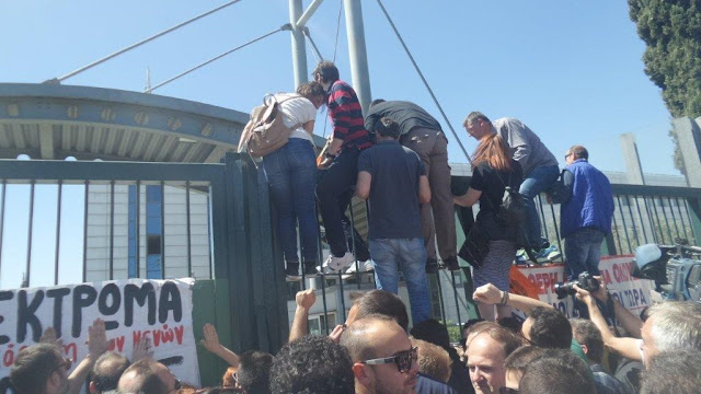 Είναι γνωστό όμως ότι “όσο κι αν ψηλώνουν τους φράχτες, άλλο τόσο βελτιώνονται κι οι άλτες!” Δεκάδες εκπαιδευτικοί κατάφεραν να αιφνιδιάσουν τις δυνάμεις των ΜΑΤ και να εισέλθουν στο Υπουργείο Παιδείας.