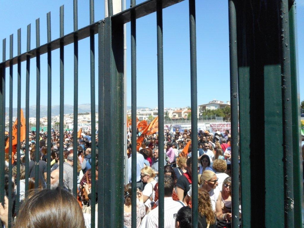 Οι χιλιάδες εκπαιδευτικοί που βρέθηκαν στο Υπουργείο Παιδείας βρήκαν τις πύλες του κλειστές, όπως εξάλλου έχουμε συνηθίσει, βέβαια με διμοιρίες ΜΑΤ τόσο μέσα, όσο και έξω από το υπουργείο.