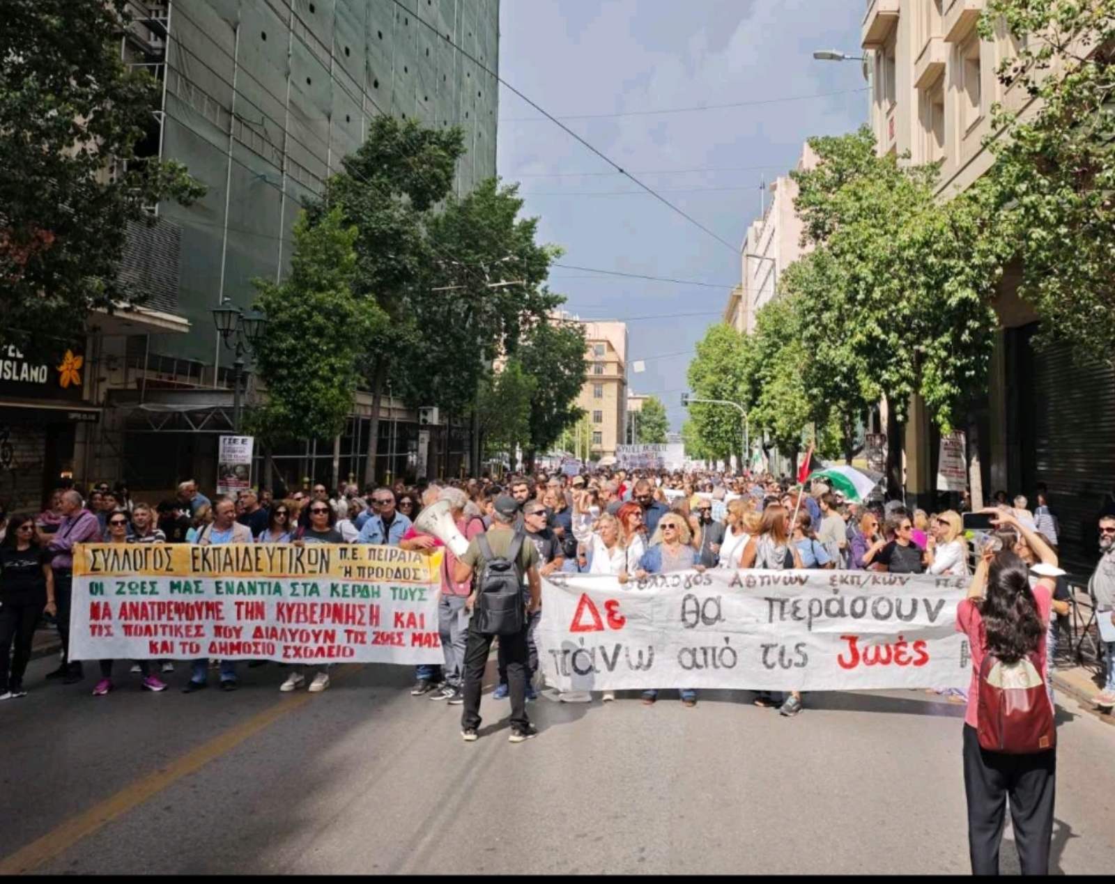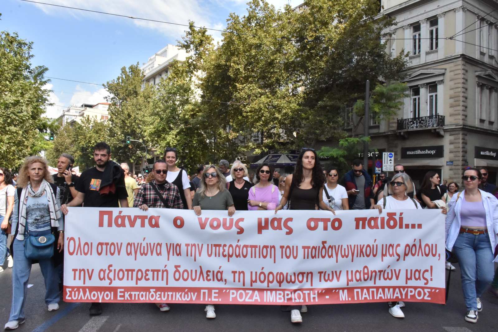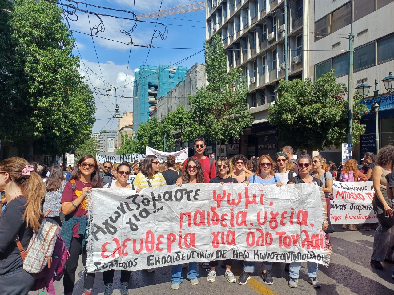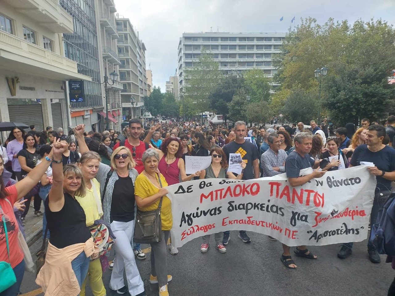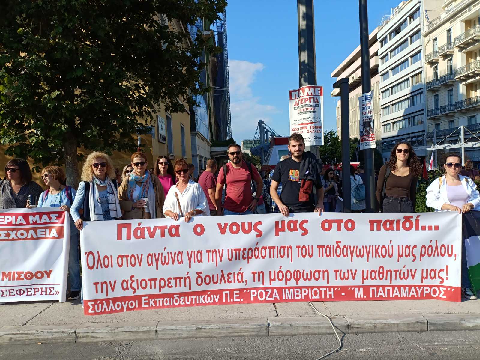 Μαζικά και μαχητικά τα μπλοκ των εκπαιδευτικών σωματείων και στη συγκέντρωση στην Κλαυθμώνος